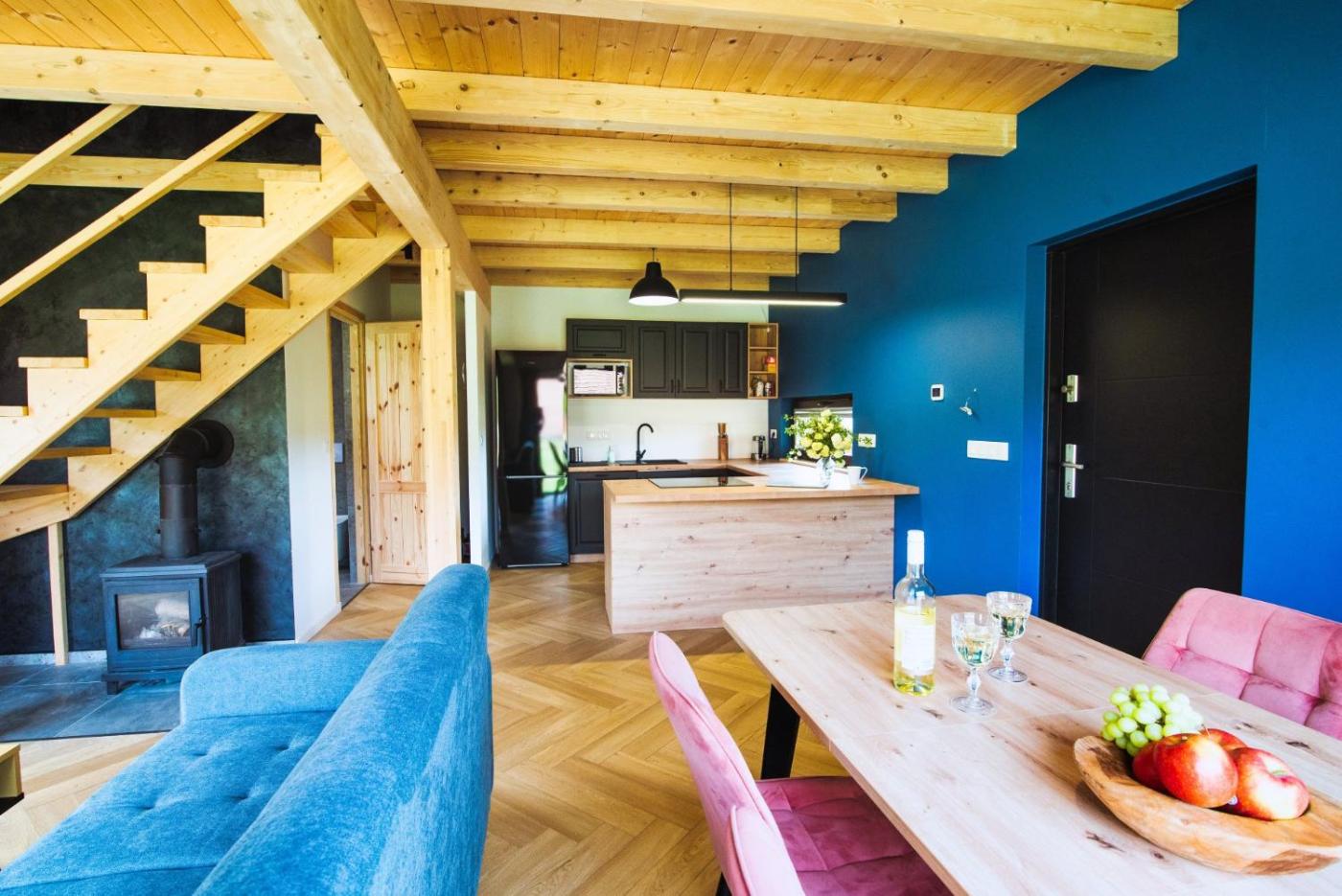 Located in Rybno in the Warmia-Masuria region and Stadium Lubawa reachable within 22 km, Rumiane Chatki provides accommodation with free WiFi, a childrens playground, a private beach area and free private parking. There is a private entrance at the holiday home for the convenience of those who stay. Guests can make use of the outdoor fireplace or the picnic area, or enjoy views of the pool and garden.